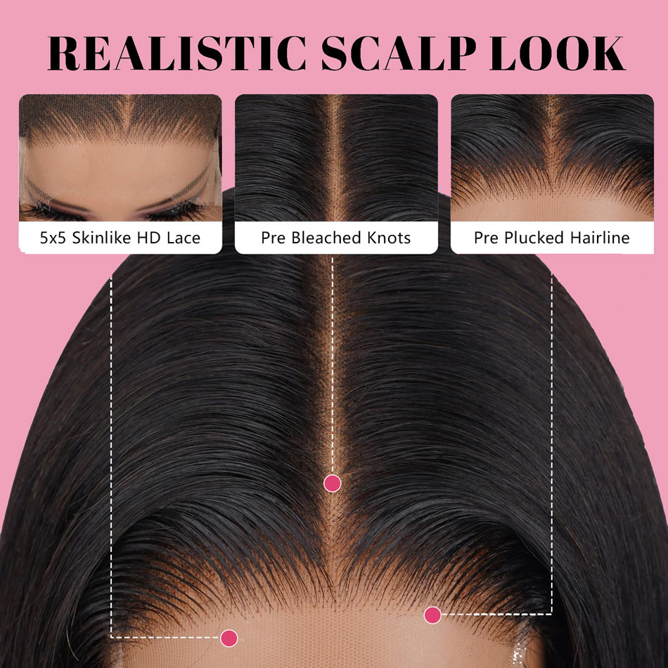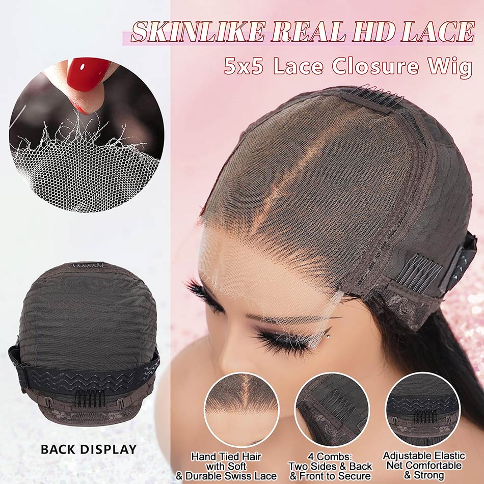 【Bone Straight Double Drawn】#T1B/33 5x5 HD Lace Closure Bob Wig Pre Plucked With Natural Hairline Short Bob For Black Women