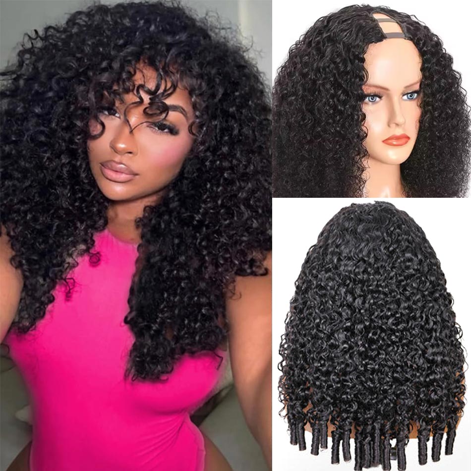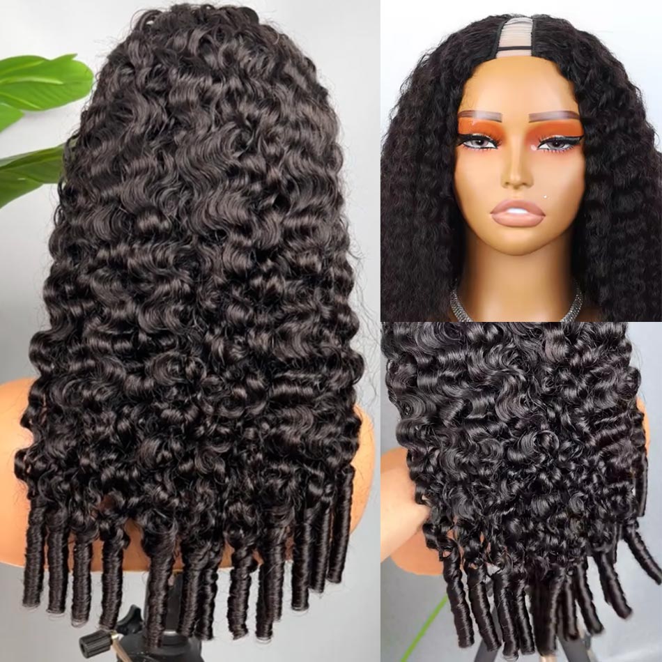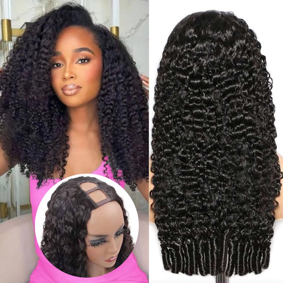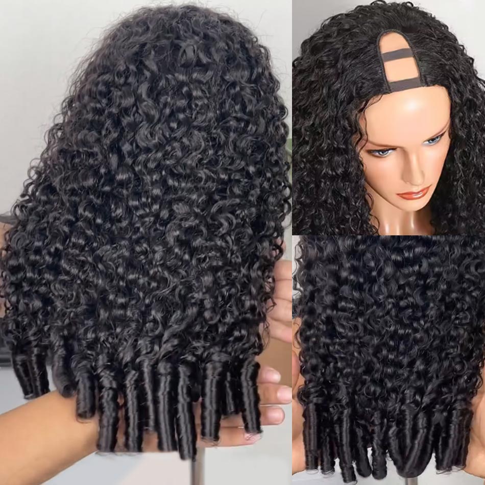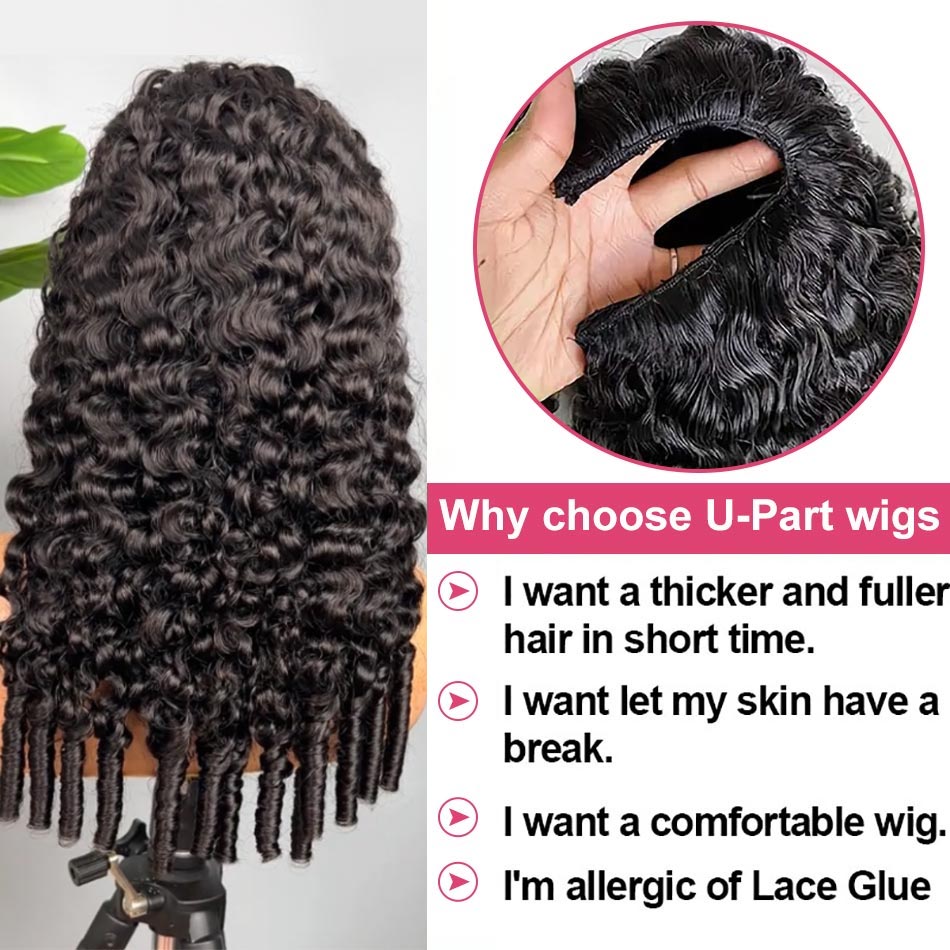 Burmese French Curls U Part Wig with Natural Hair Leave Out No Glue No Gel Human Hair Wig